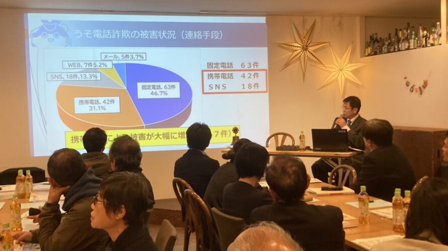 小野田ライオンズクラブでは 11月20日木曜日にwakayamaにて 11月第二例会を行いました。 第二例会では市民安全委員会担当で 講師をお招きして行いました。 山口県山陽小野田警察署 生活安全課長 山本康嗣 様をお招きして 「防犯講話 ~心の隙をついた詐欺の手口~」について お話を伺いました。 近年ではSNS型投資・ロマンス詐欺被害が 急増しているそうです。 山口県では2025年10月末現在 […]